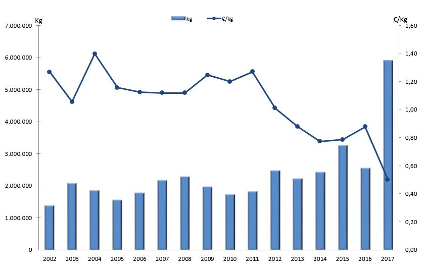 | Nº días | kg | % | Euros | % | Euros/kg | |