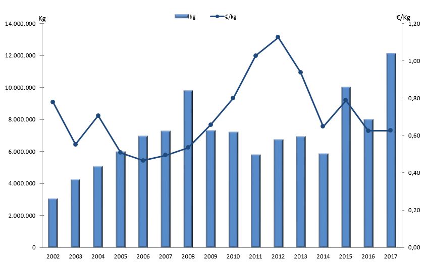 | Nº días | kg | % | Euros | % | Euros/kg | |