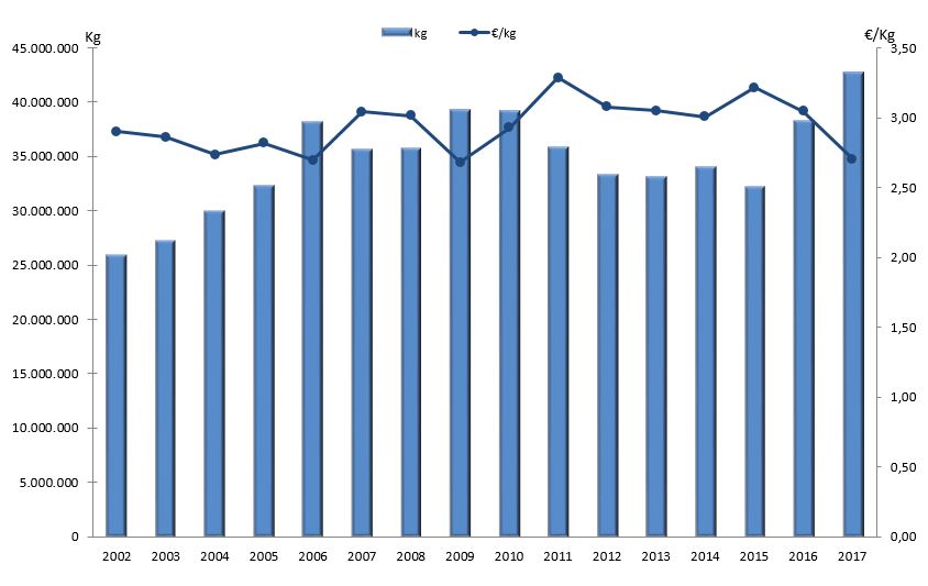 | Nº días | kg | % | Euros | % | Euros/kg | |