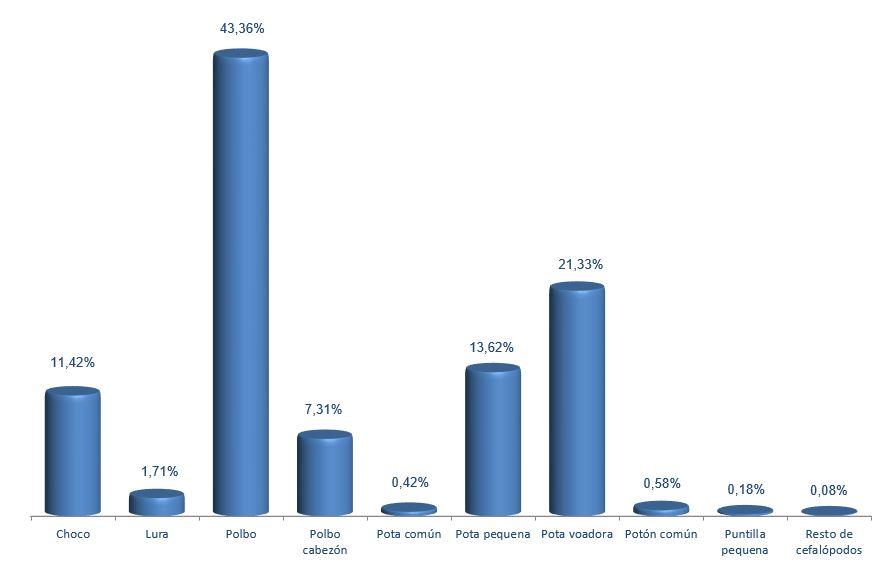 | Polbo cabezón | 322.856 | 7,31% | 805.813 | 2,79% | 2,50 |