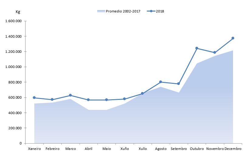 | Febreiro | 568.856 | 4.340.222 | 576.992 | 4.025.602 | -8.136 | 314.620 | -1,41% | 7,82% |