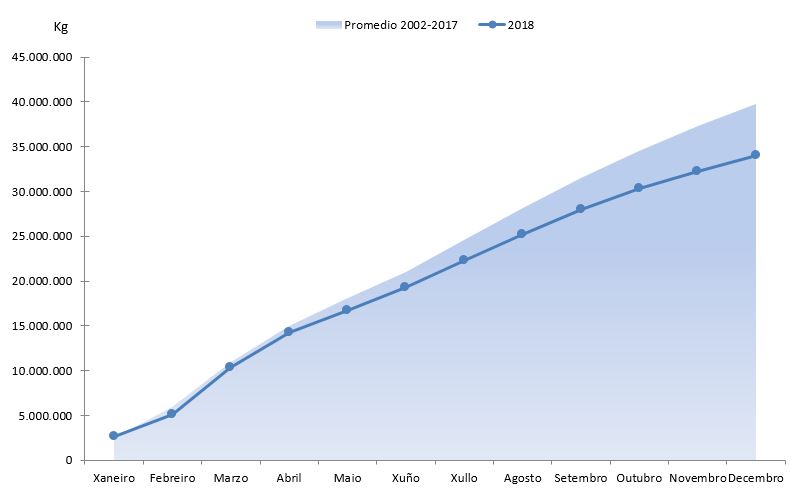 | Crustáceos | 47.064 | 774.082 | 65.146 | 936.107 | -18.082 | -162.025 | -27,76% | -17,31% |