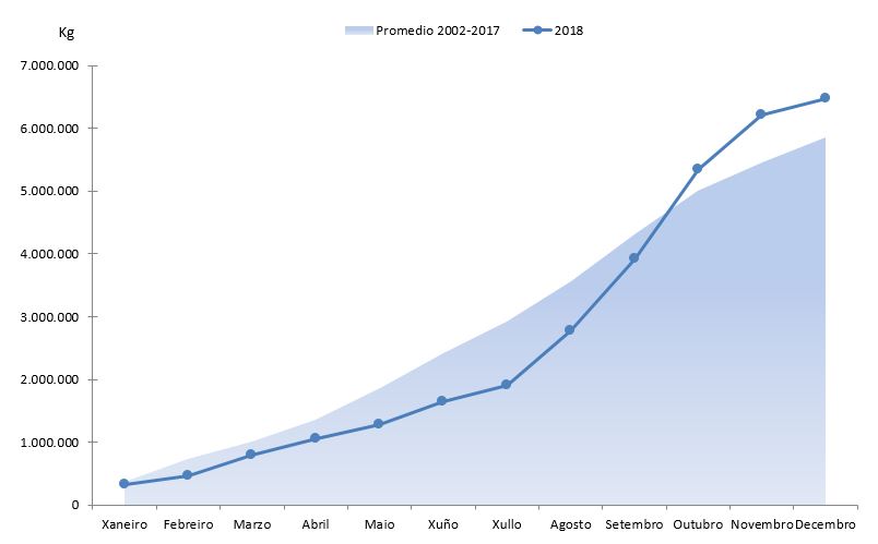 | Crustáceos | 43.981 | 591.126 | 31.487 | 484.257 | 12.494 | 106.869 | 39,68% | 22,07% |