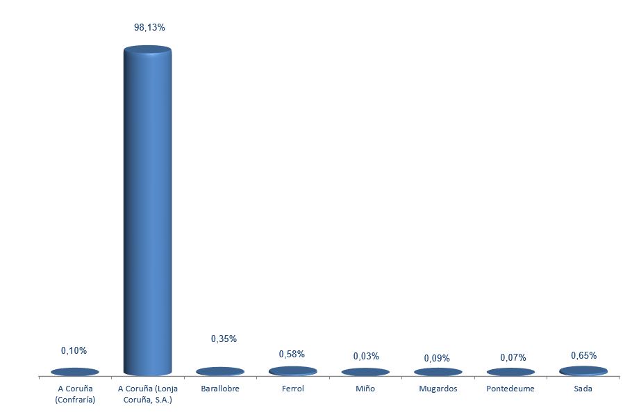 | A Coruña (Lonja Coruña, S.A.) | 40.146.810 | 98,13% | 78.368.819 | 94,87% | 1,95 |