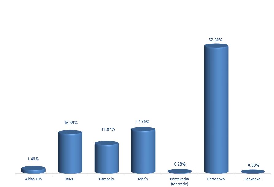 | Pontevedra (Mercado) | 17.223 | 0,28% | 255.005 | 1,43% | 14,81 |