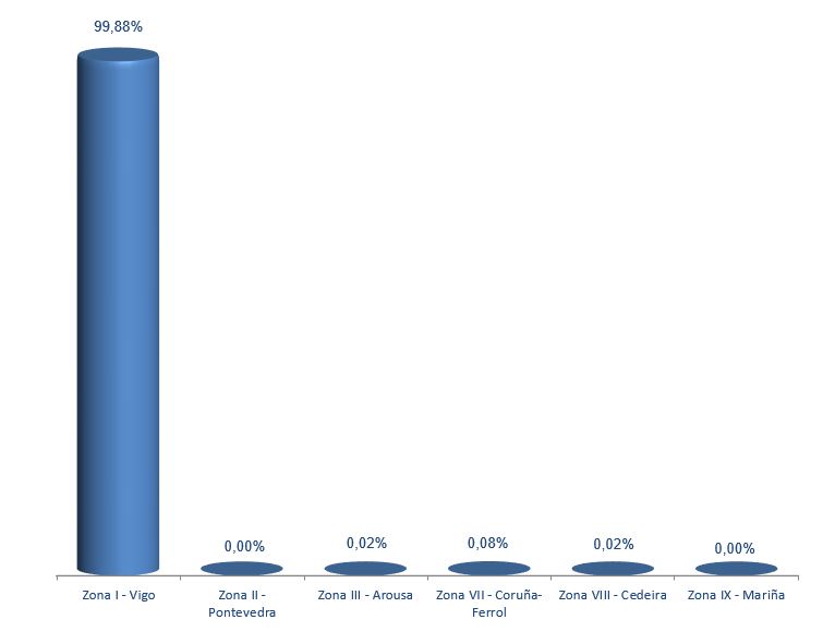 | Zona VII - Coruña-Ferrol | 35 | 1.729 | 0,08% | 6.160 | 0,10% | 3,56 |
