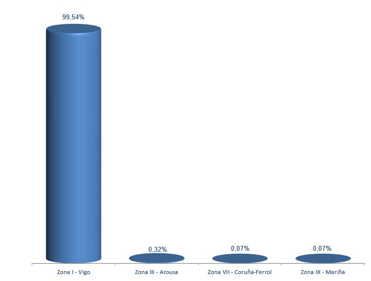 | Zona I - Vigo | 131 | 807.323 | 99,54% | 6.020.438 | 99,49% | 7,46 |