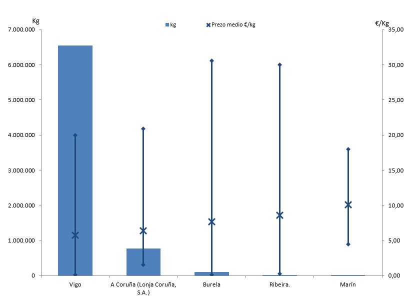 | A Coruña (Lonja Coruña, S.A.) | 285 | 771.705 | 10,29% | 4.941.042 | 11,25% | 6,40 |