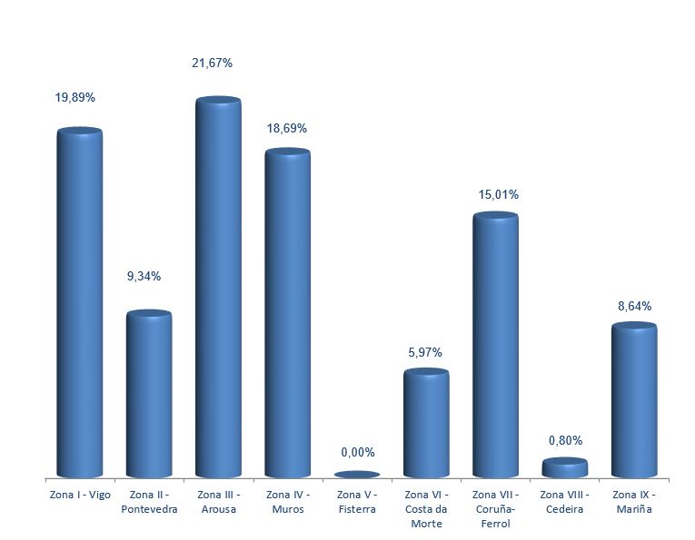 | Zona VIII - Cedeira | 55 | 186.165 | 0,80% | 78.963 | 0,76% | 0,42 |