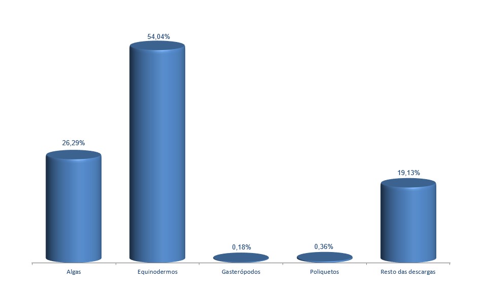 | Equinodermos | 831.713 | 54,04% | 6.028.382 | 79,44% | 7,25 |