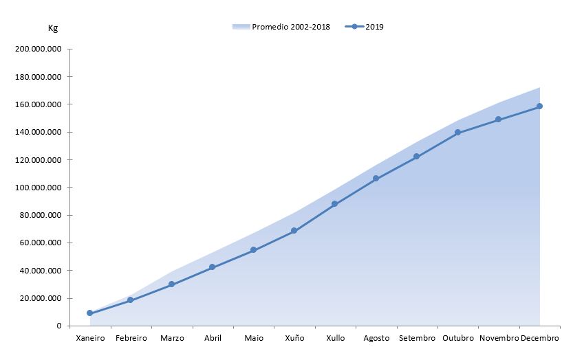 | Bivalvos | 9.828.890 | 88.060.891 | 9.522.073 | 86.148.507 | 306.817 | 1.912.384 | 3,22% | 2,22% |