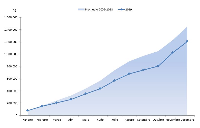 | Percebe | 310.540 | 9.262.752 | 316.343 | 8.924.473 | -5.804 | 338.279 | -1,83% | 3,79% |
