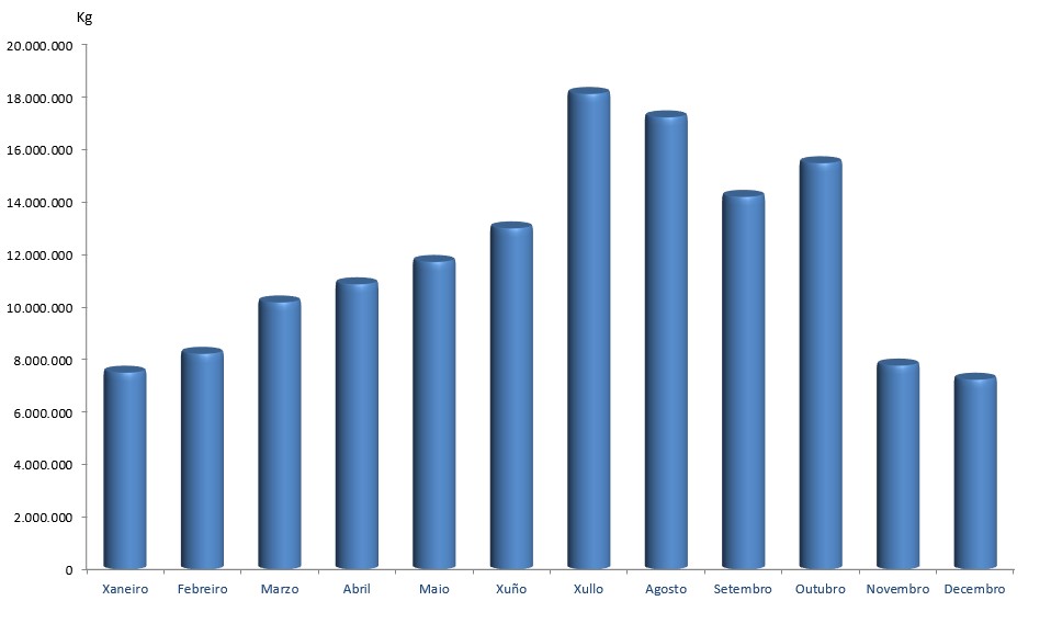 | Pescada | 2.476.308 | 2.368.363 | 2.229.142 | 2.584.862 | 2.624.474 | 1.755.256 | 2.420.656 | 2.169.687 | 2.172.527 | 2.462.310 | 1.808.320 | 2.351.775 | 27.423.681 |