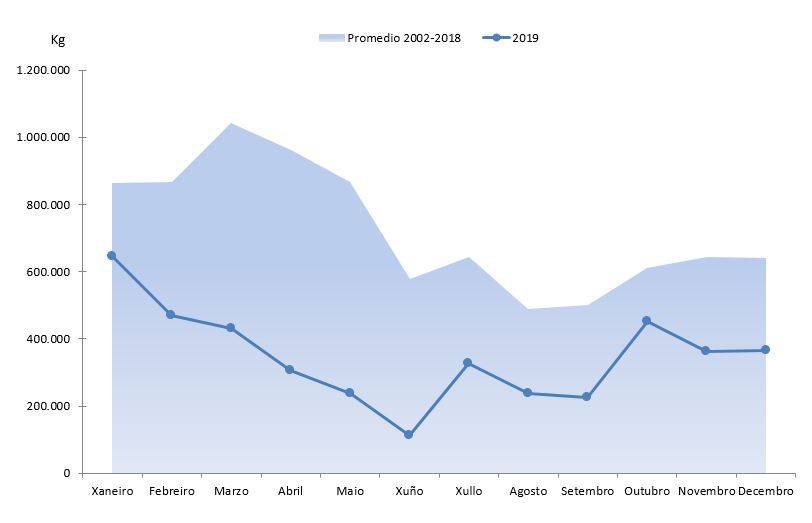 | Xuño | 113.539 | 466.783 | 139.425 | 644.114 | -25.886 | -177.332 | -18,57% | -27,53% |