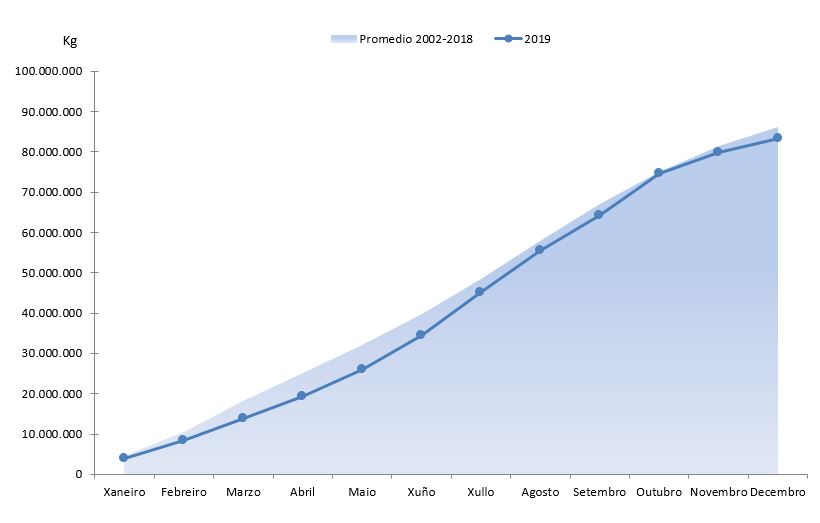 | Bivalvos | 5.258.510 | 42.707.552 | 4.920.220 | 39.737.414 | 338.290 | 2.970.138 | 6,88% | 7,47% |
