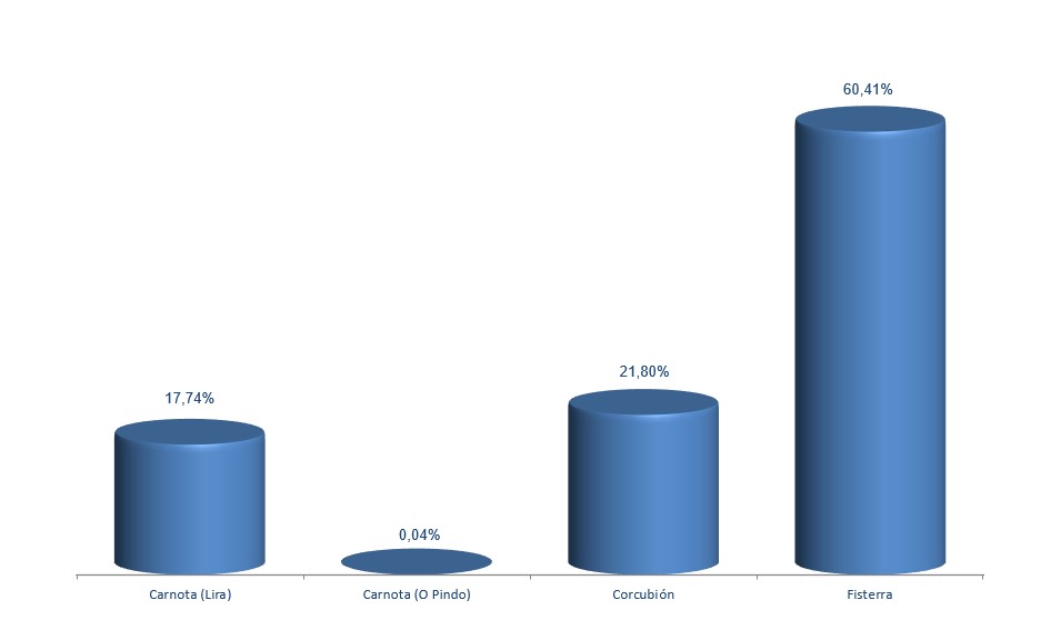 | Fisterra | 540.544 | 60,41% | 3.130.863 | 58,65% | 5,79 |