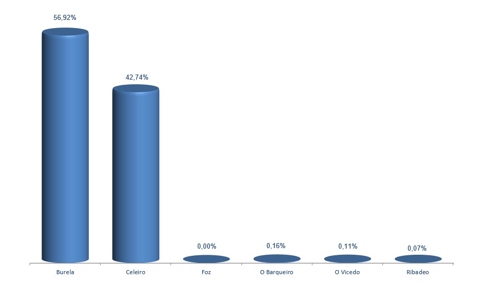 | O Vicedo | 32.542 | 0,11% | 39.731 | 0,04% | 1,22 |