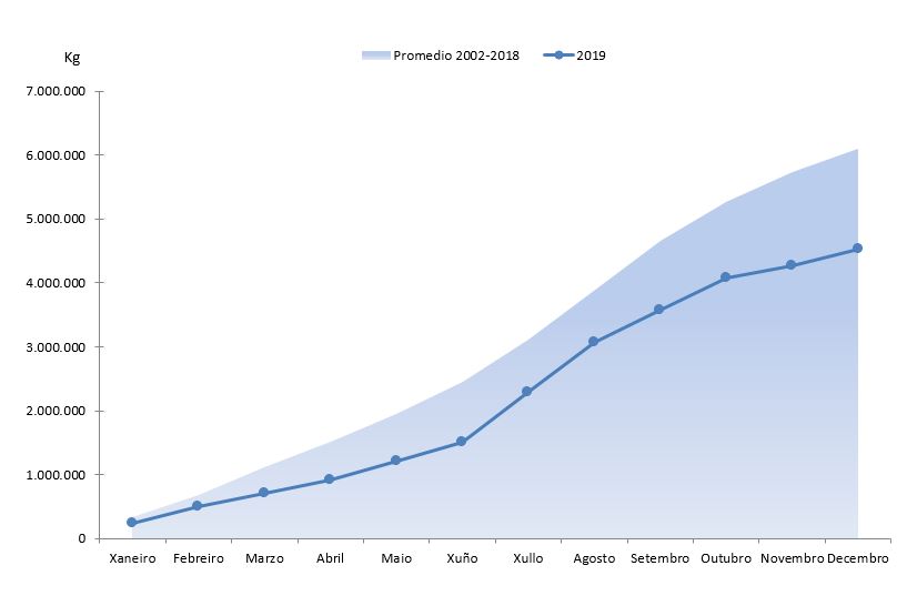 | Cefalópodos | 382.031 | 2.363.782 | 425.622 | 2.873.913 | -43.591 | -510.131 | -10,24% | -17,75% |