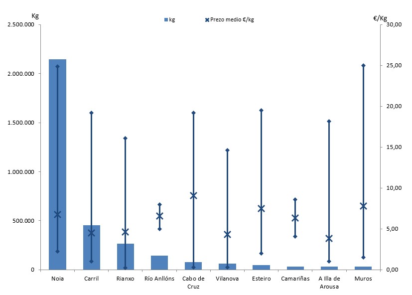 | Muros | 36 | 30.268 | 0,88% | 235.777 | 1,10% | 7,79 |