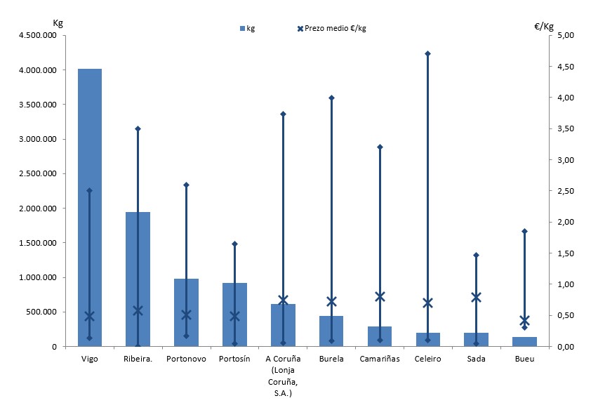 | A Coruña (Lonja Coruña, S.A.) | 200 | 618.003 | 6,16% | 458.102 | 8,31% | 0,74 |