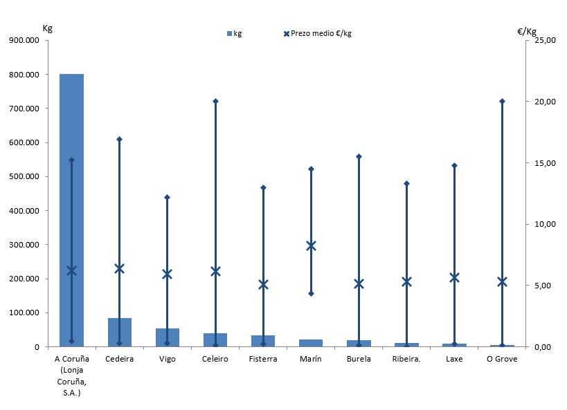 | A Coruña (Lonja Coruña, S.A.) | 268 | 802.142 | 74,21% | 4.993.233 | 74,70% | 6,22 |