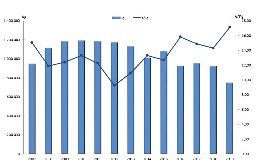 | Zona VII - Coruña-Ferrol | 41.275 | 75.902 | 117.872 | 78.812 | 111.760 | 254.408 | 303.028 | 307.644 | 281.772 | 167.765 | 123.232 | 107.867 | 46.865 |