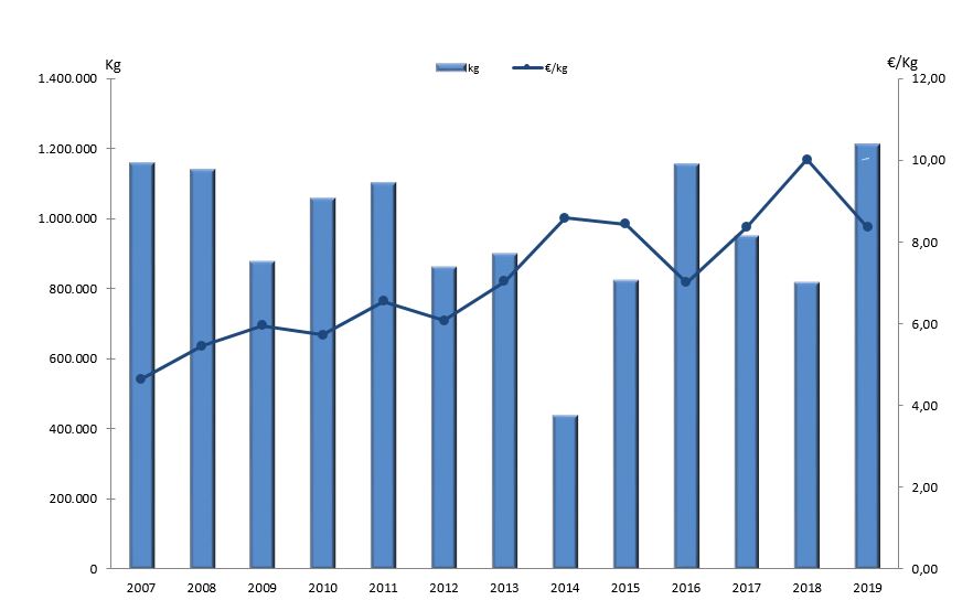 | Nº días | kg | % | Euros | % | Euros/kg | |
