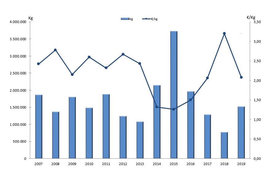| Nº días | kg | % | Euros | % | Euros/kg | |