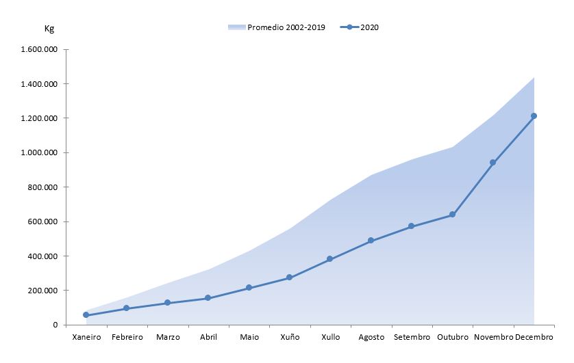 | Centola ou centolo | 564.233 | 5.220.982 | 443.408 | 4.827.980 | 120.825 | 393.002 | 27,25% | 8,14% |
