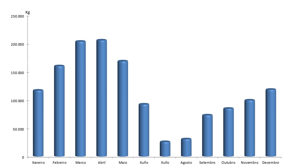 | Cogombro de mar real | 6.753 | 8.890 | 7.656 | 5.595 | 11.134 | 16.240 | 16.567 | 9.914 | 6.404 | 3.857 | 5.735 | 6.553 | 105.299 |
