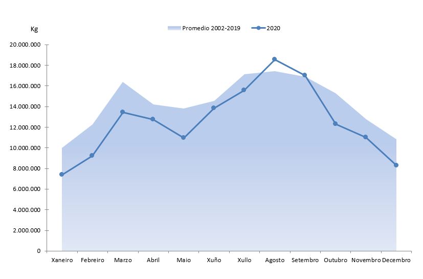 | Xuño | 13.823.378 | 30.787.367 | 13.871.923 | 31.434.601 | -48.545 | -647.235 | -0,35% | -2,06% |