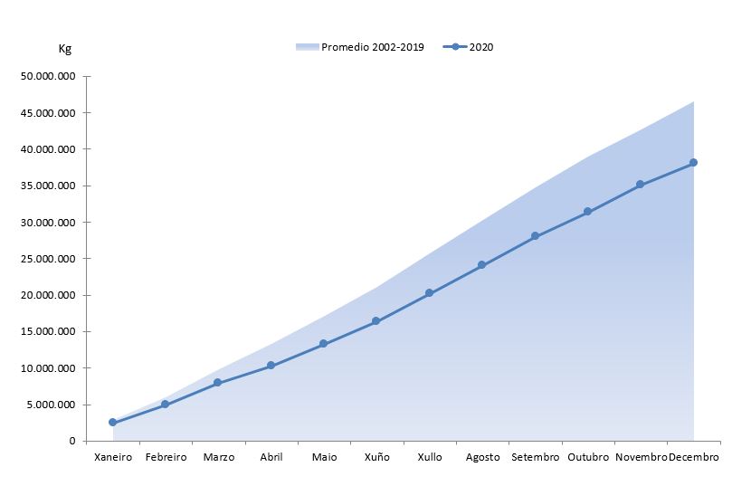 | Bivalvos | 3.417.781 | 37.555.240 | 4.525.500 | 45.307.130 | -1.107.719 | -7.751.890 | -24,48% | -17,11% |