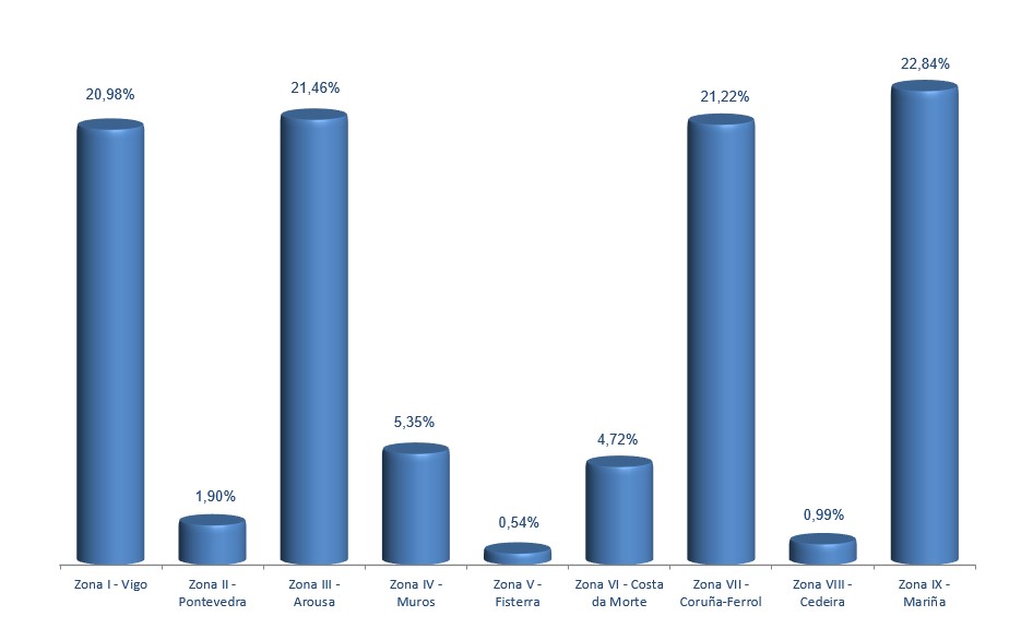 | Zona V - Fisterra | 813.915 | 0,54% | 4.490.312 | 1,09% | 5,52 |