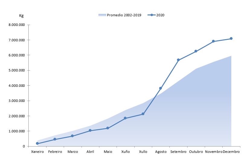 | Bivalvos | 86.217 | 828.311 | 215.724 | 1.482.080 | -129.507 | -653.769 | -60,03% | -44,11% |