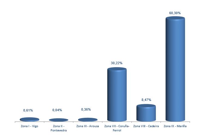 | Zona VIII - Cedeira | 19 | 146.799 | 8,47% | 623.225 | 9,13% | 4,25 |