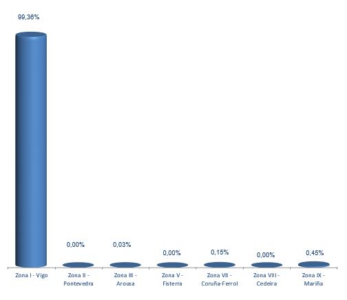 | Zona VII - Coruña-Ferrol | 49 | 3.444 | 0,15% | 9.808 | 0,17% | 2,85 |