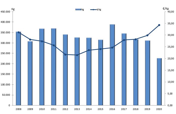 | Zona VI - Costa da Morte | 47.488 | 36.547 | 44.386 | 39.533 | 23.254 | 24.247 | 20.262 | 14.835 | 16.744 | 14.251 | 14.104 | 13.814 | 8.915 |