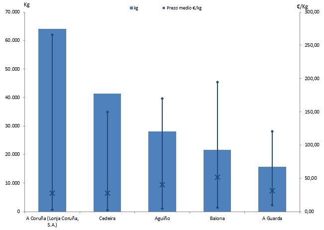 | A Coruña (Lonja Coruña, S.A.) | 201 | 64.146 | 28,40% | 1.791.352 | 23,17% | 27,93 |