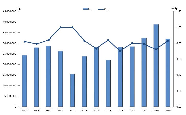 | Zona II - Pontevedra | 549.588 | 608.517 | 428.142 | 430.288 | 503.595 | 872.699 | 661.021 | 785.524 | 690.135 | 1.225.564 | 1.173.728 | 1.110.290 | 639.565 |
