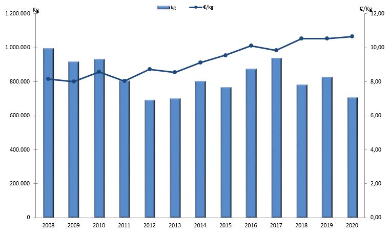 | Centola ou centolo | 150 | 61.945 | 8,76% | 922.086 | 12,21% | 14,89 |