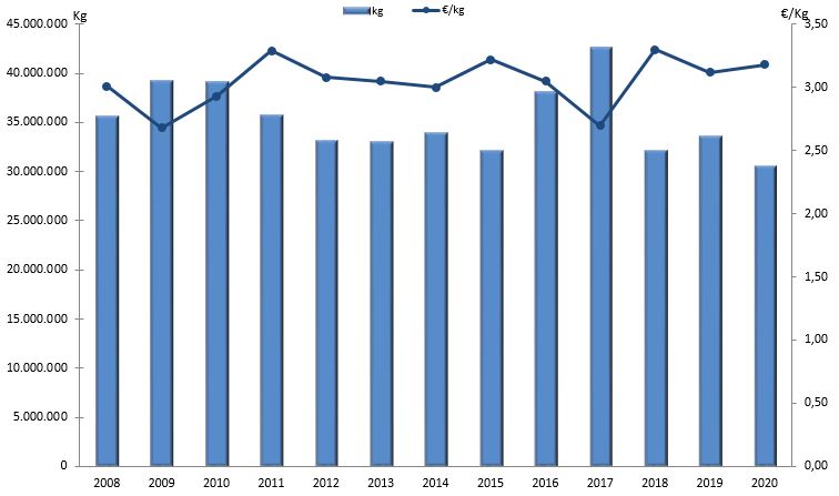 | Nº días | kg | % | Euros | % | Euros/kg | |