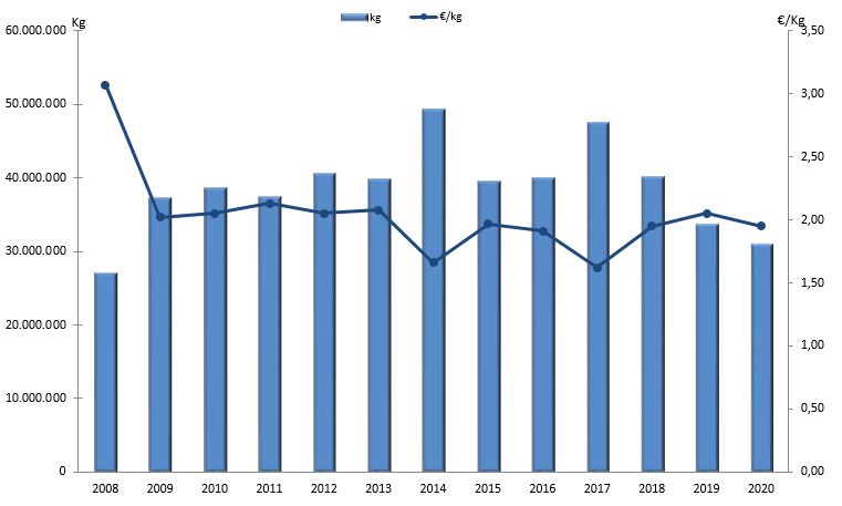 | Nº días | kg | % | Euros | % | Euros/kg | |