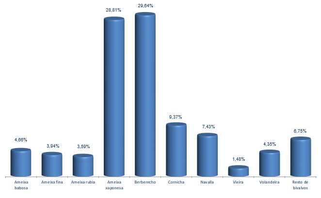 | Zamburiña | 43.629 | 0,62% | 340.734 | 0,46% | 7,81 |