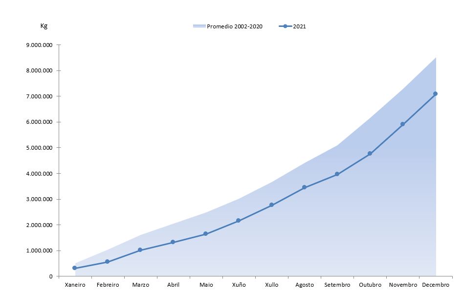 | Zamburiña | 43.629 | 340.734 | 24.921 | 172.903 | 18.708 | 167.831 | 75,07% | 97,07% |