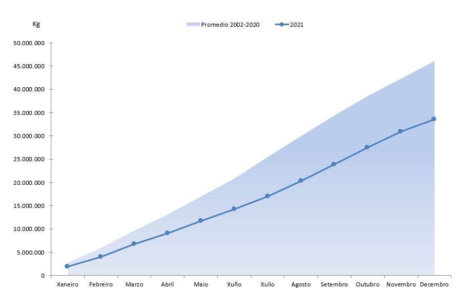 | Bivalvos | 3.791.844 | 41.918.528 | 3.417.781 | 37.555.240 | 374.063 | 4.363.289 | 10,94% | 11,62% |