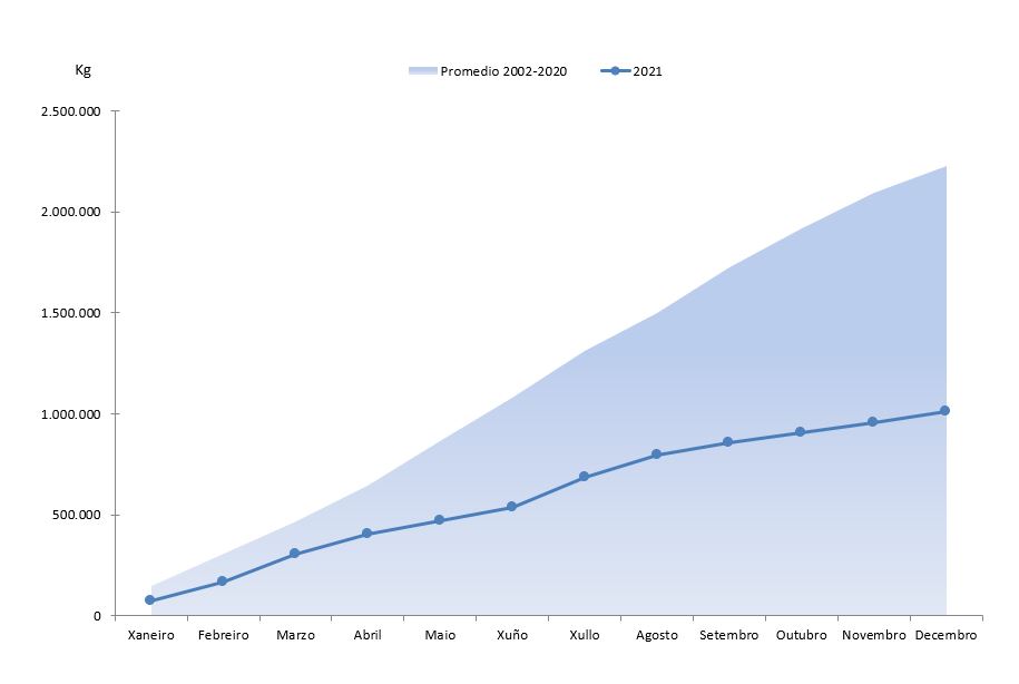 | Bivalvos | 43.653 | 100.012 | 42.046 | 225.831 | 1.607 | -125.820 | 3,82% | -55,71% |