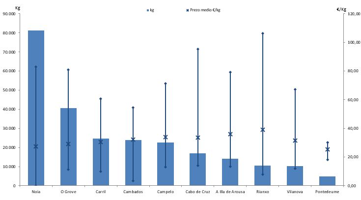 | Cambados | 215 | 23.823 | 8,54% | 770.658 | 9,12% | 32,35 |