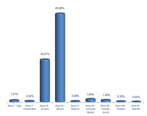 | Zona VIII - Cedeira | 62 | 6.355 | 0,30% | 41.054 | 0,30% | 6,46 |