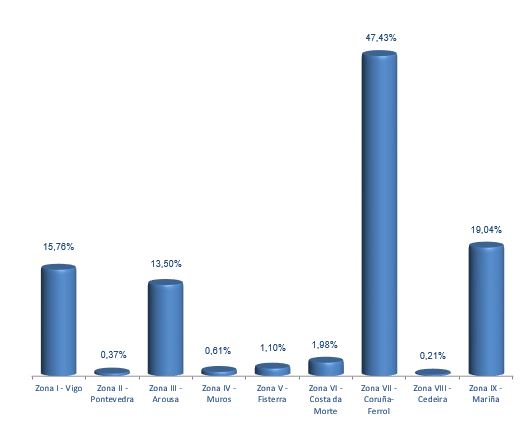 | Zona VIII - Cedeira | 166 | 3.178 | 0,21% | 3.737 | 0,13% | 1,18 |