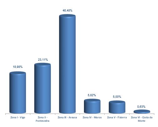 | Zona III - Arousa | 244 | 244.765 | 46,48% | 2.870.914 | 45,65% | 11,73 |